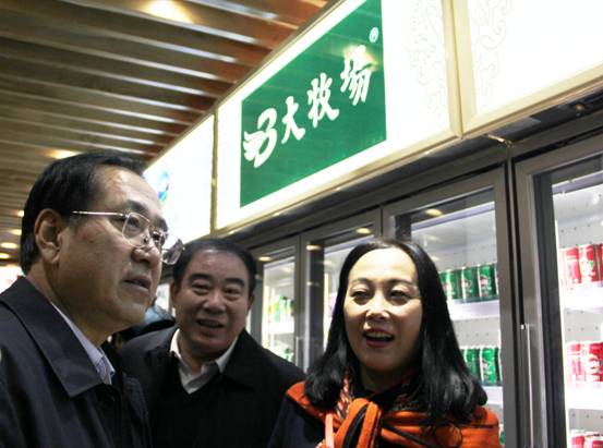 內(nèi)蒙古大牧場牧業(yè)(集團(tuán))有限責(zé)任公司副總裁宋寧娜為王玉明副主席一行介紹產(chǎn)品信息
