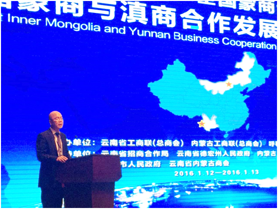 112日下午,由云南省工商聯(lián)(總商會)、內(nèi)蒙古自治區(qū)工商聯(lián)(總商會)、內(nèi)蒙古自治區(qū)呼和浩特市工商聯(lián)(總商會)主辦,云南省招商合作局、云南省德宏州人民政府、內(nèi)蒙古自治區(qū)農(nóng)牧業(yè)廳支持,內(nèi)蒙古農(nóng)牧業(yè)產(chǎn)業(yè)化龍頭企業(yè)協(xié)會聯(lián)合主辦,瑞麗市人民政府和云南省內(nèi)蒙古商會共同承辦的首屆“一帶一路”全國蒙商云南行——蒙商與滇商合作發(fā)展(瑞麗)論壇在德宏州瑞麗市隆重舉行。