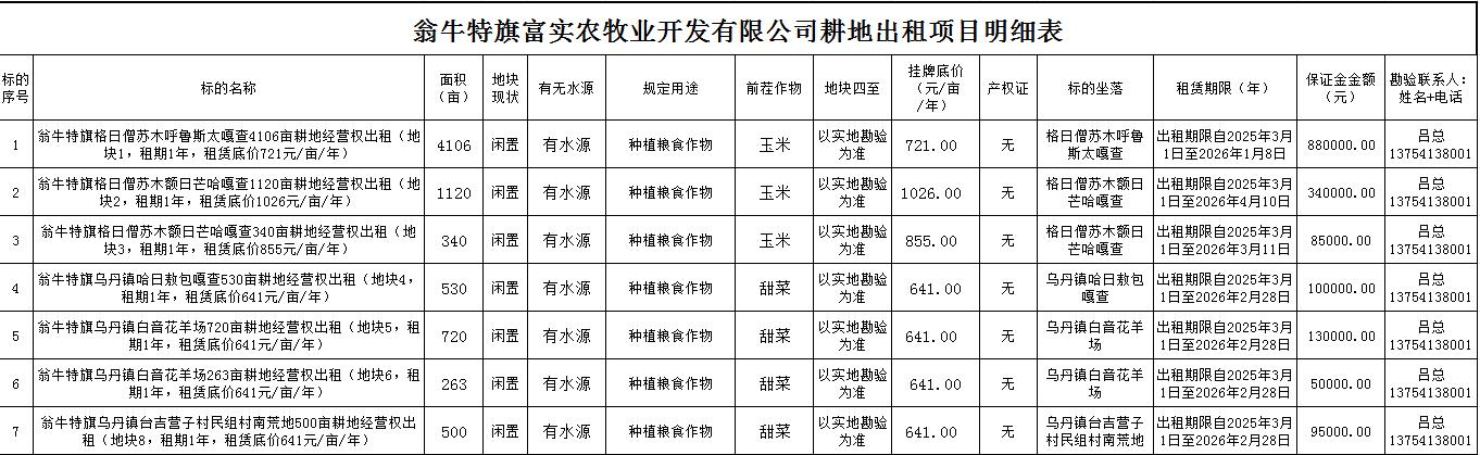 翁牛特旗富實農牧業(yè)開發(fā)有限公司約7579畝耕地經營權出租
