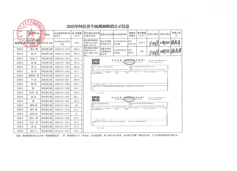 2025年阿拉善羊絨溯源購銷公示信息