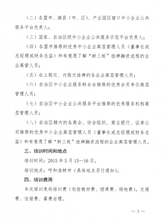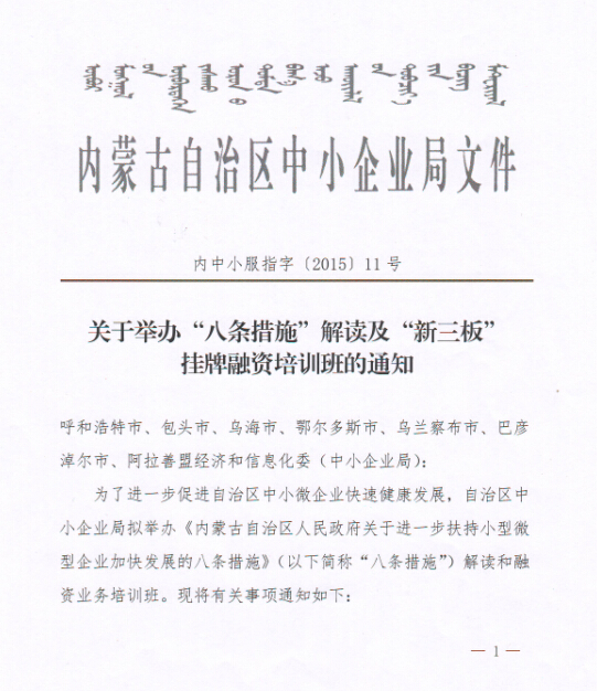 關(guān)于組織會員單位參加“八條措施”解讀及“新三板”掛牌融資培訓(xùn)班的通知
