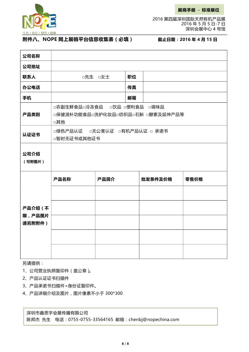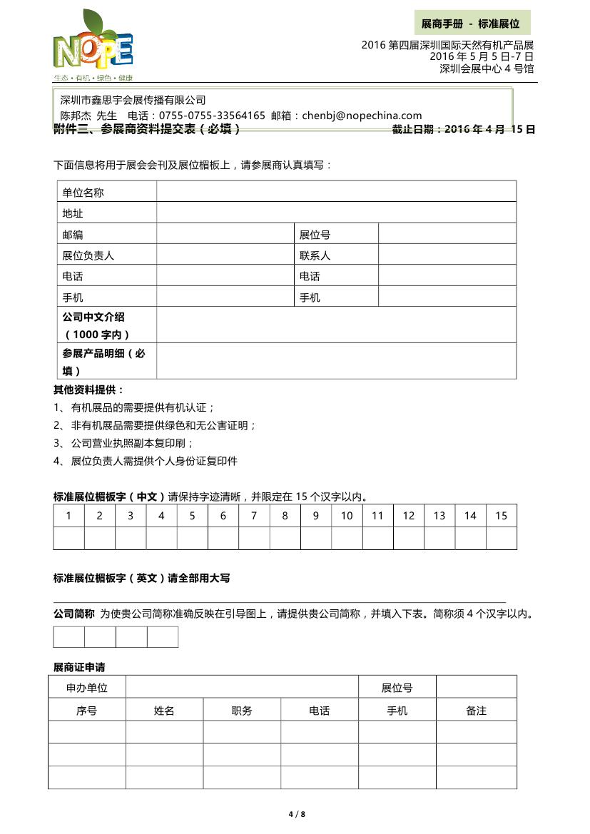 附件1:標(biāo)準(zhǔn)展位必填-2016第四屆深圳國際天然有機(jī)產(chǎn)品展-XXX公司名.doc