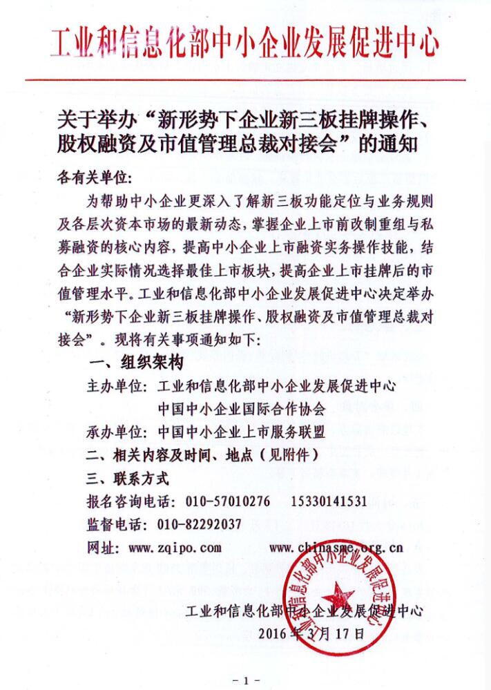 關于轉發(fā)《舉辦“新形勢下企業(yè)新三板掛牌操作、股權融資及市場管理總裁對接會”的通知》的通知