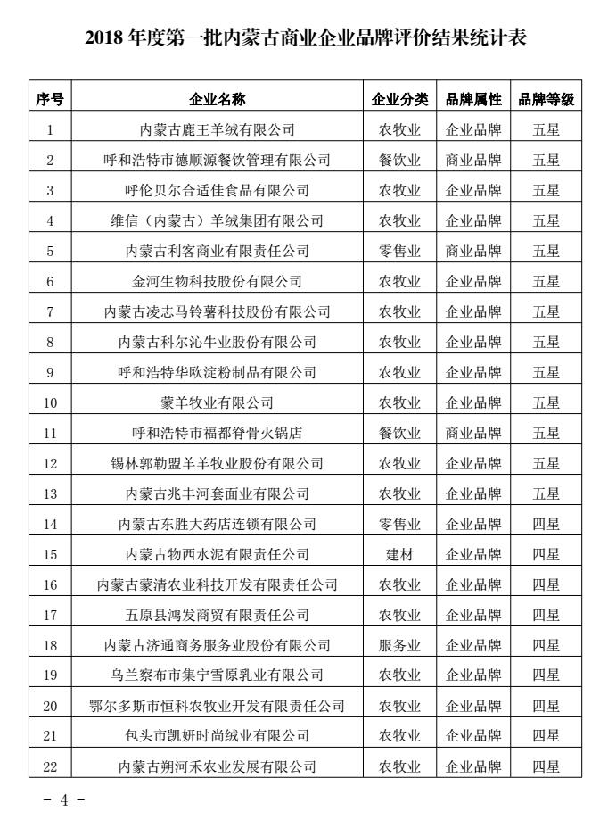 關(guān)于2018年度第一批內(nèi)蒙古商業(yè)企業(yè)品牌評價結(jié)果的公示