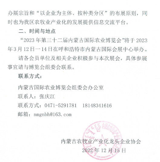 關(guān)于組織參加2023年第三十二屆內(nèi)蒙古國際農(nóng)業(yè)博覽會的通知