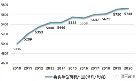 1  20132020年中國(guó)糧食單位面積產(chǎn)量情況