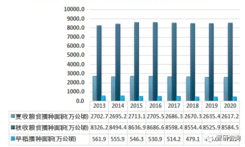 2  20132020年中國(guó)糧食種植面積分布情況