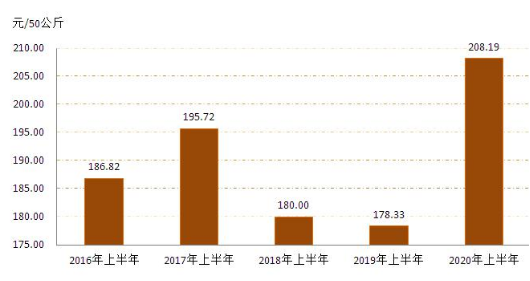 4   20162020年上半年全區(qū)玉米收購(gòu)價(jià)格對(duì)比圖