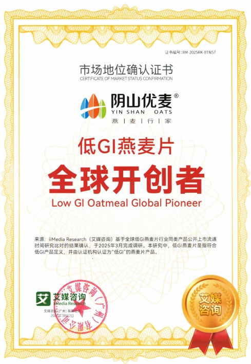 陰山優(yōu)麥此次發(fā)布的新品低GI燕麥片,是其深耕健康食品領(lǐng)域的又一力作。新品不僅通過(guò)專(zhuān)業(yè)機(jī)構(gòu)檢測(cè)認(rèn)證,獲得“低GI食品認(rèn)證”,同時(shí)陰山優(yōu)麥還獲得了“低GI燕麥片全球開(kāi)創(chuàng)者”市場(chǎng)地位確認(rèn)證書(shū)。